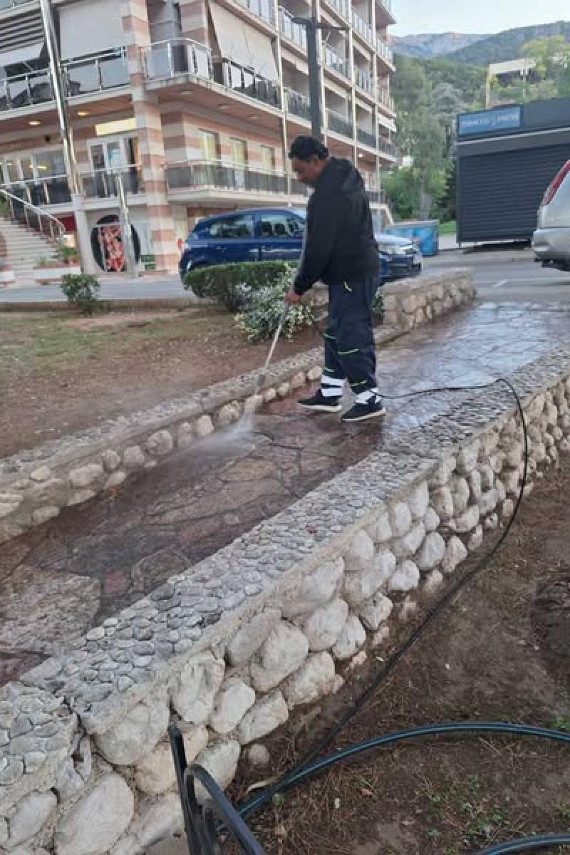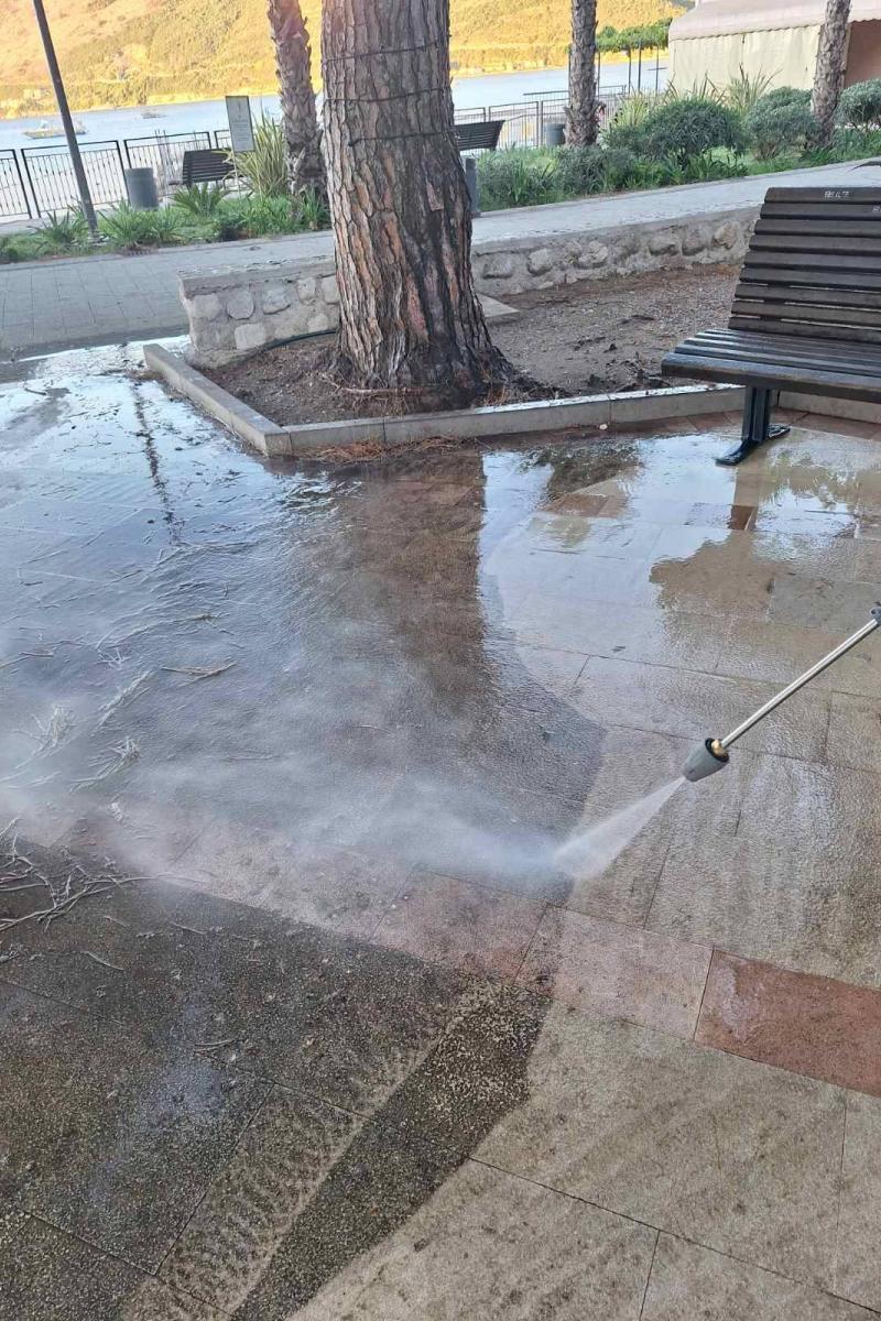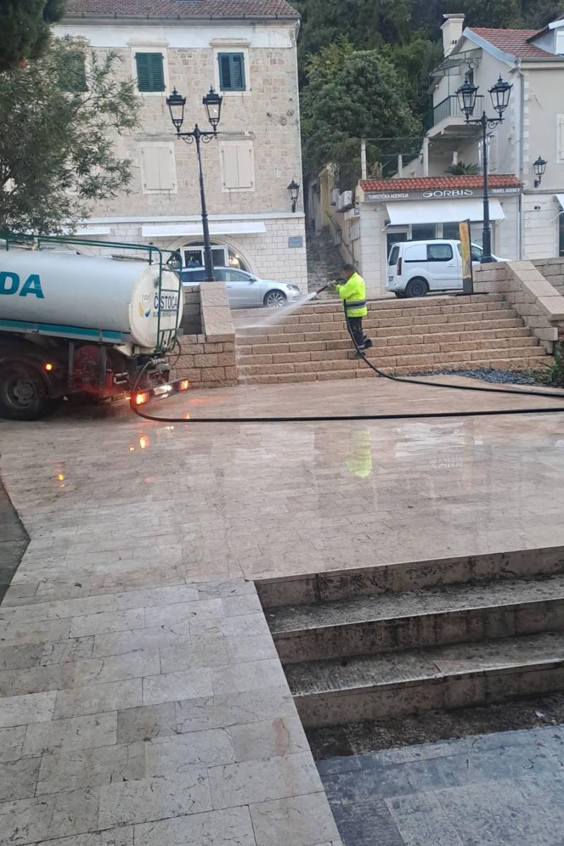 Nastavak aktivnosti pranja. Jutros je prano u starom gradu, plato ispred zgrade Opštine, ulica Branka Ćopića, igralište kod škole "Milan Vuković" i rivijera od Porto Novog do Đenovića (jun, 2025.g.).