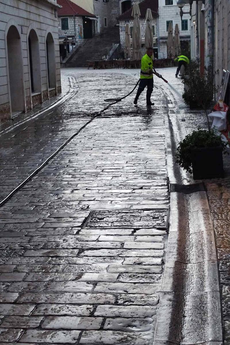 Pranje trgova Belavista i Nikole Đurkovića, kao i okolnih stepeništa u starom gradu (jul, 2025.g.).