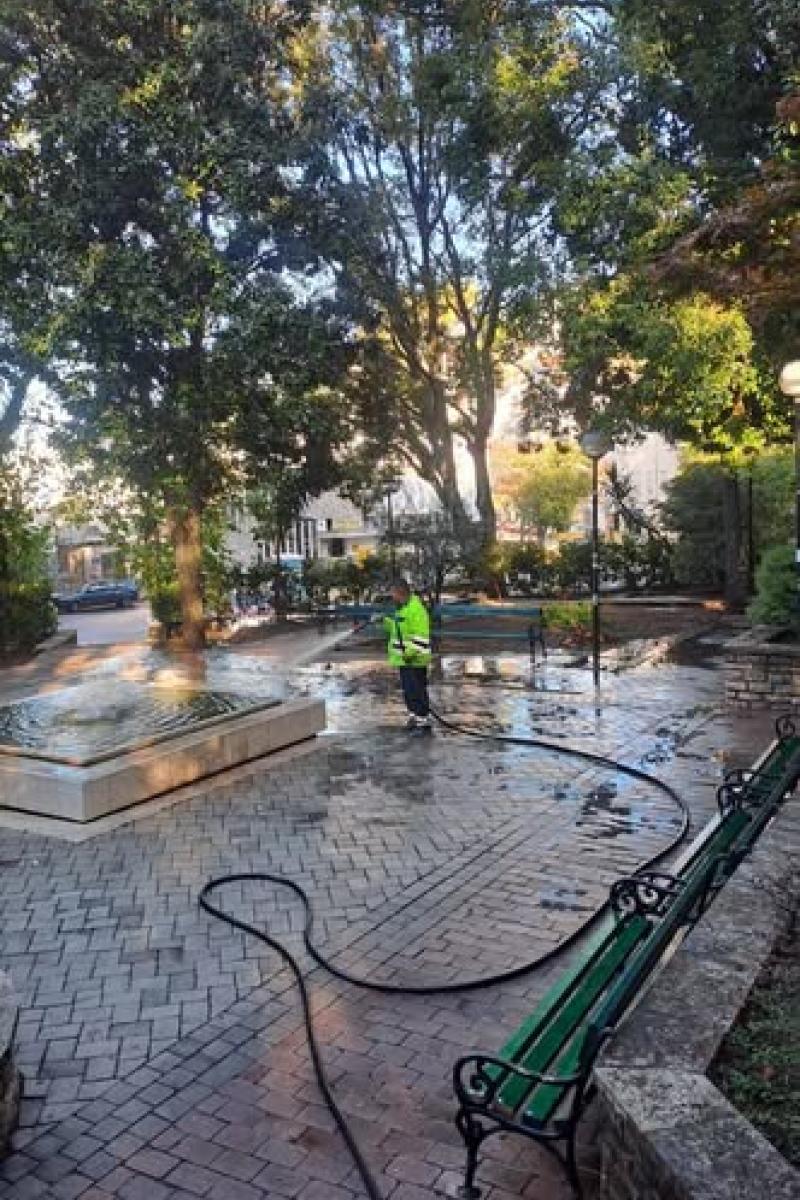 Mašinsko pranje na trgu Belavista (jun, 2025.g.).