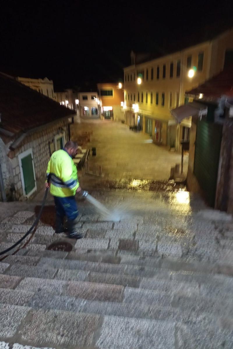 Jutarnje aktivnosti pranja šetališta od Škvera do hotela perla, kao i u starom gradu (jun, 2025.g.).