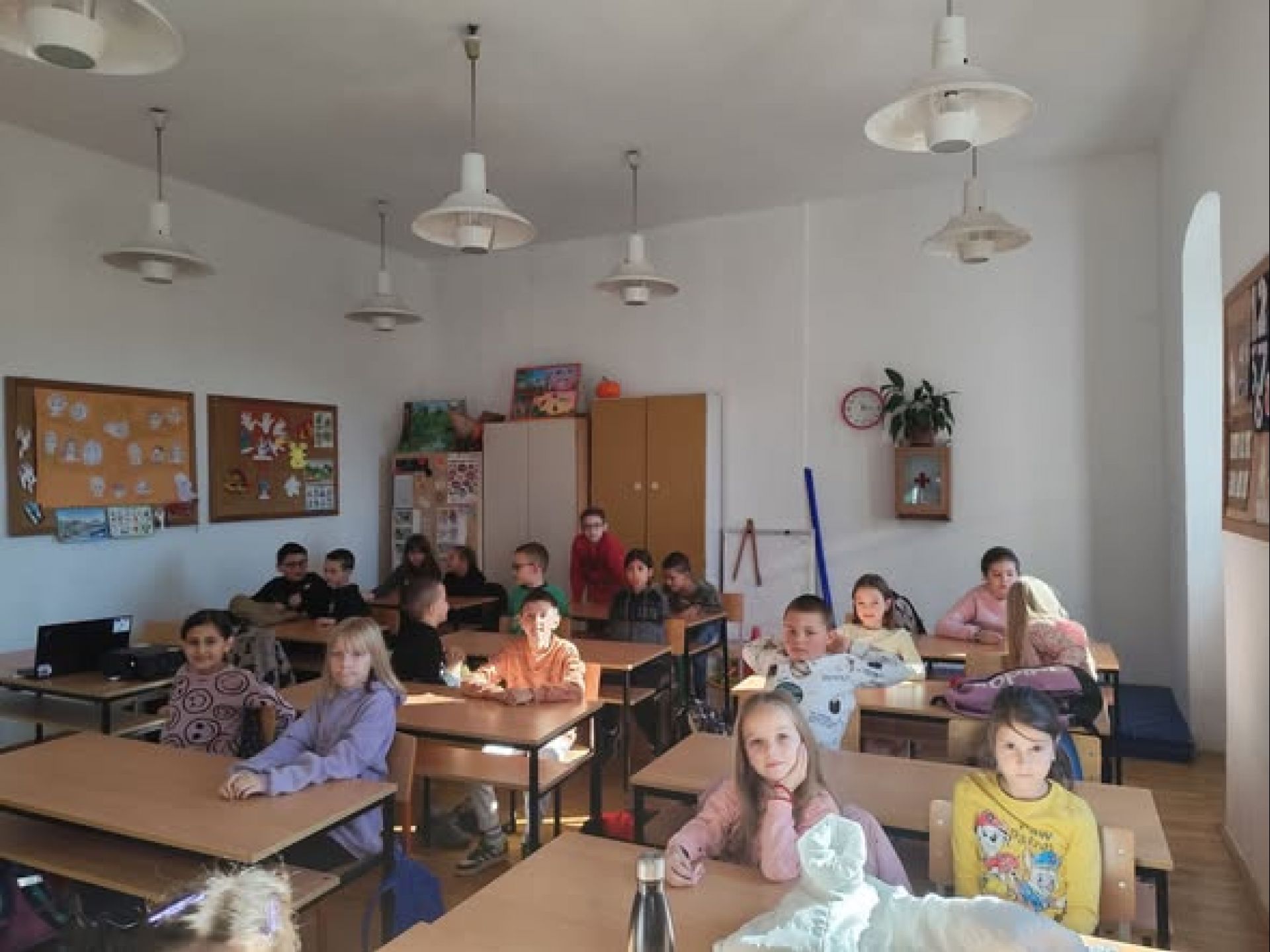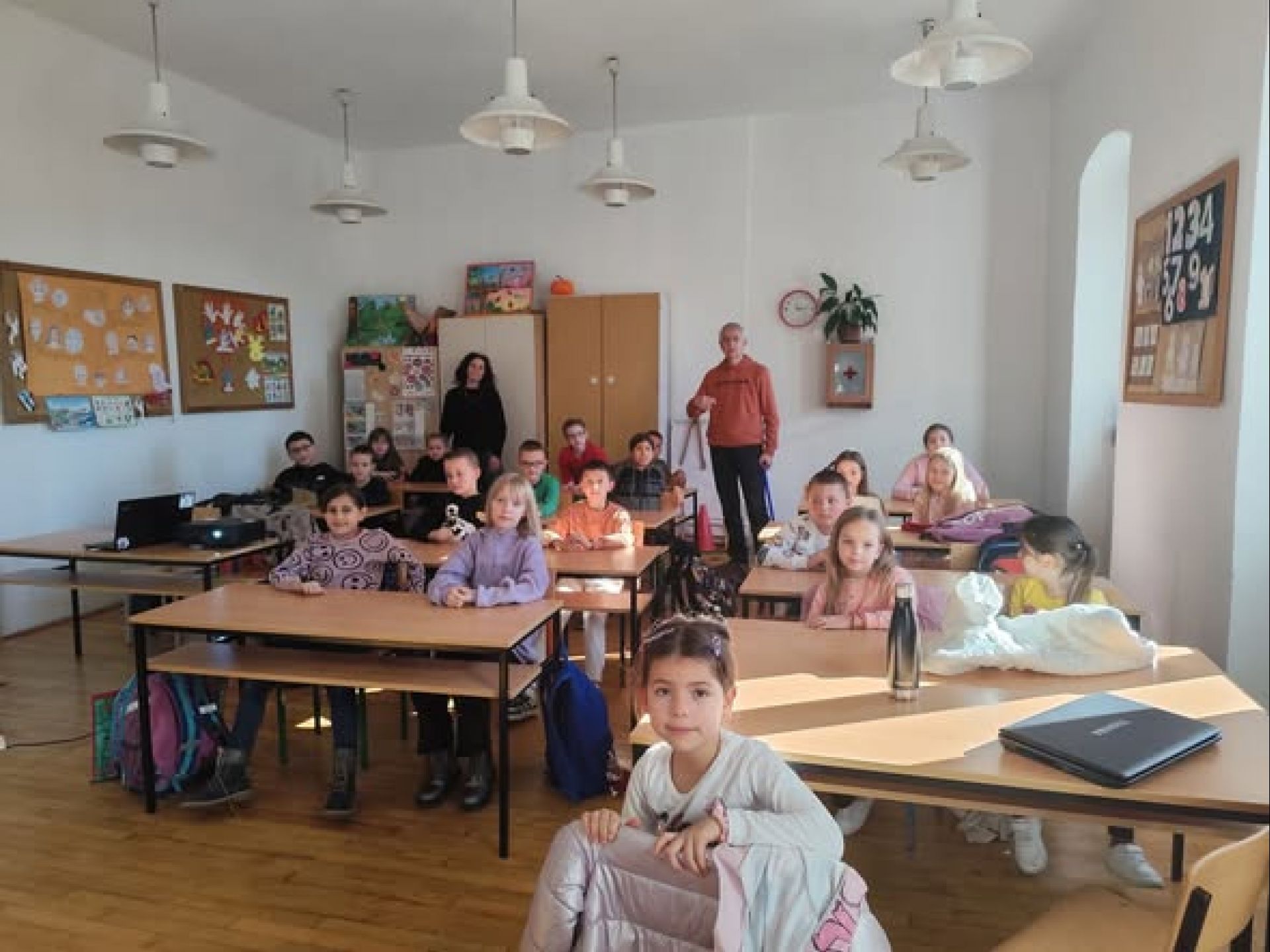 Edukativna radionica na temu "Pravilno odlaganje otpada, reciklaža i zaštita životne sredine" u osnovnoj školi "Orjenski bataljon " u Baošićima (oktobar, 2025.g.).
