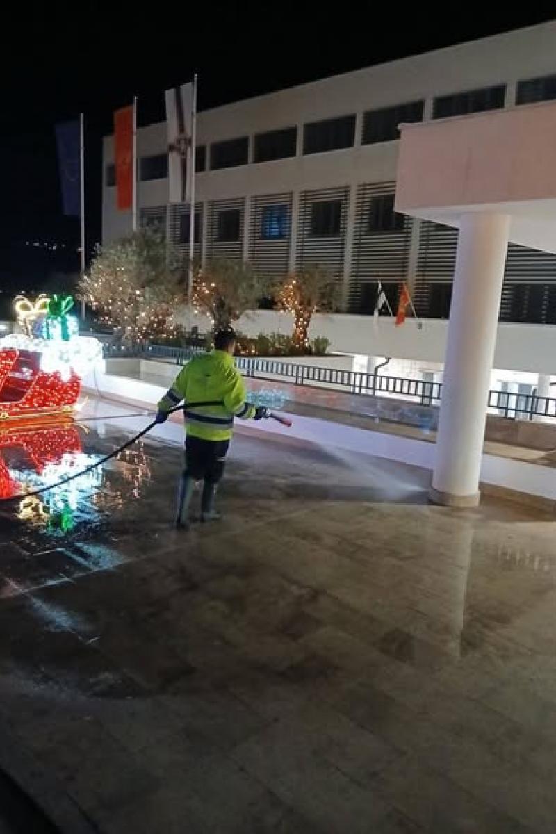 Pranje platoa ispred zgrade Opštine (decembar, 2025.g.).