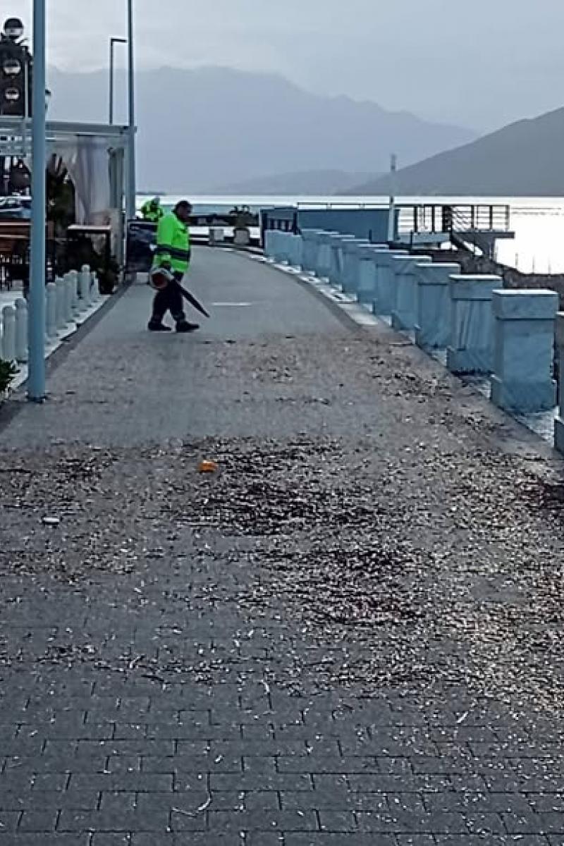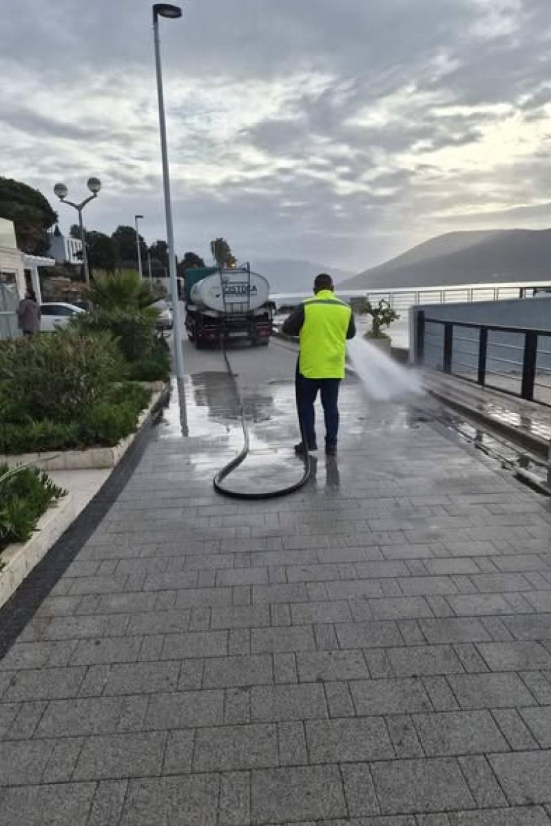 Čišćenje i pranje šetališta od Škvera do Meljina nakon nevremena (januar, 2026.g.).