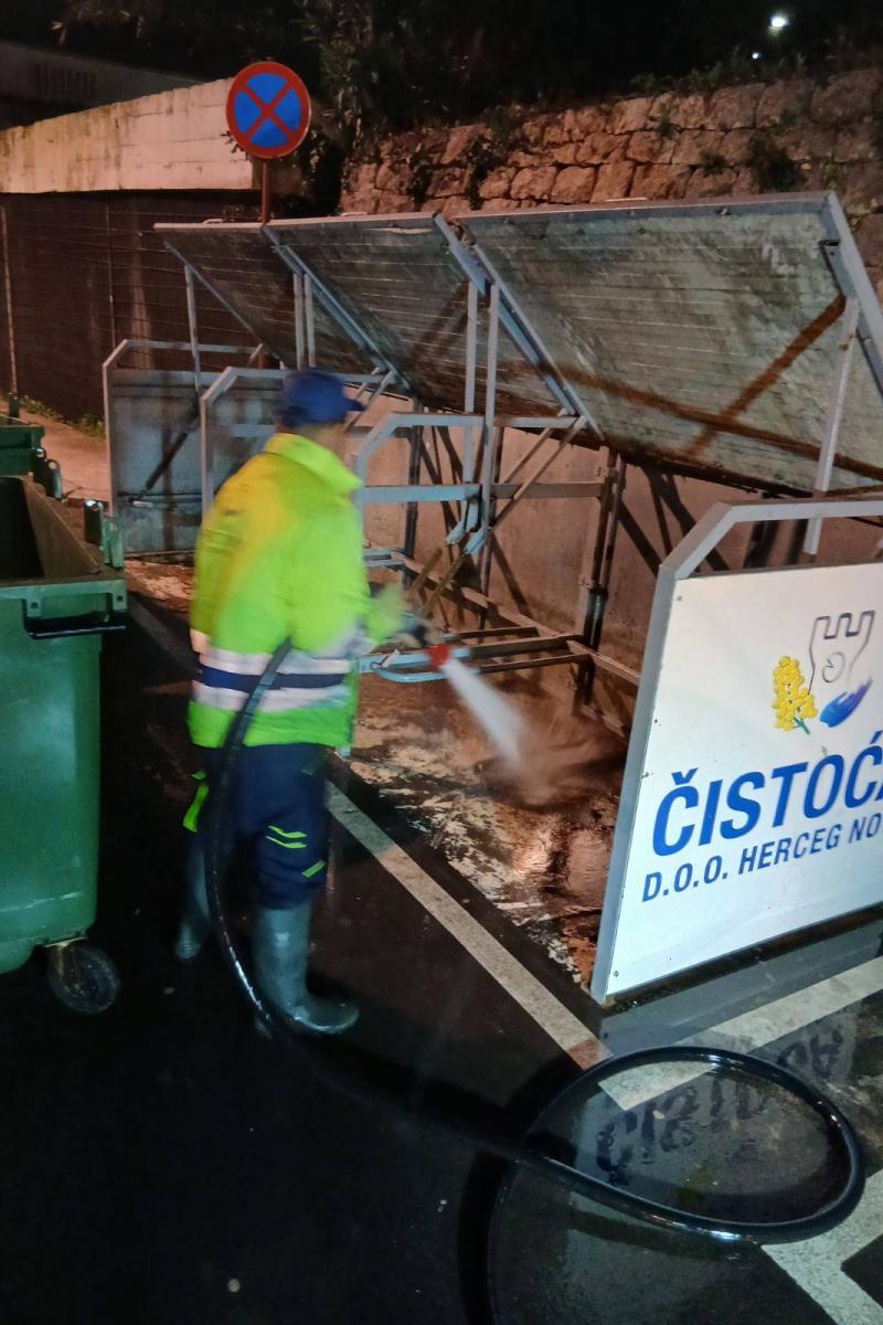 Pranje duž Negoševe ulice, kontejnerskih mjesta duž magistrale, kao i od Zelenike do Porto Novog (avgust, 2025.g.).
